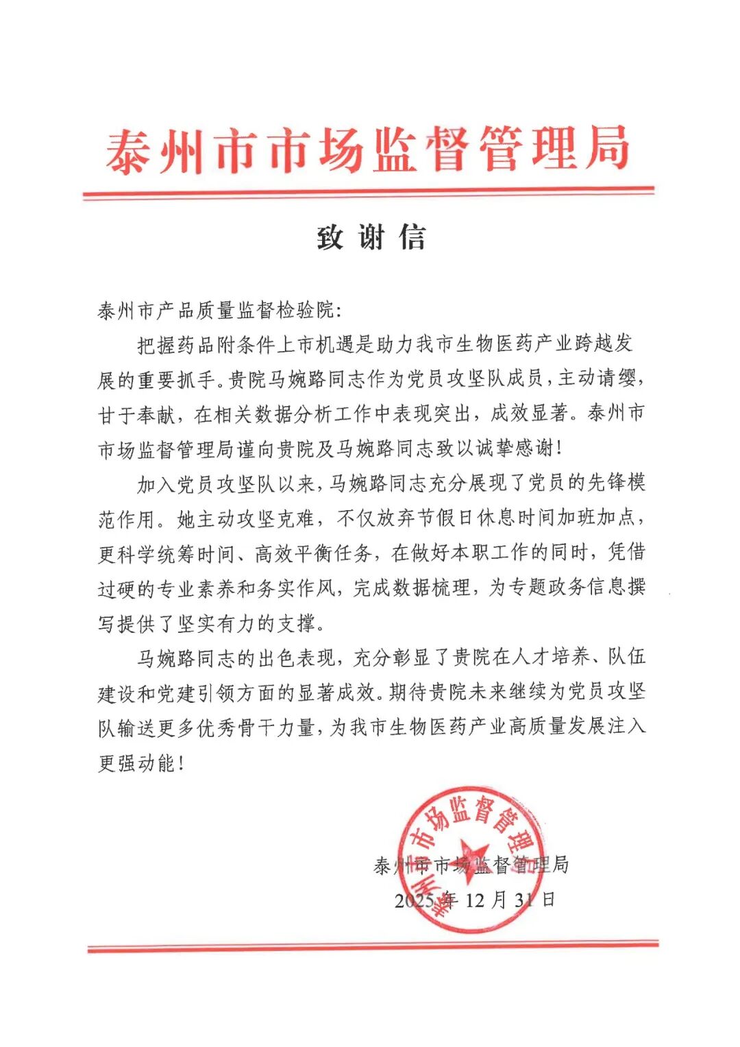 年终岁末,寒意渐浓却挡不住暖意涌动——我们欣喜收到这两份满载认可的感谢信,那就是一份最珍贵的年终礼物,让整个单位都充盈着温暖与振奋。在此,向受到表扬的职工致以最诚挚的祝贺,你们在工作中展现出的责任与担当、敬业与热忱,赢得外界肯定,既为个人争光,更为单位添彩。